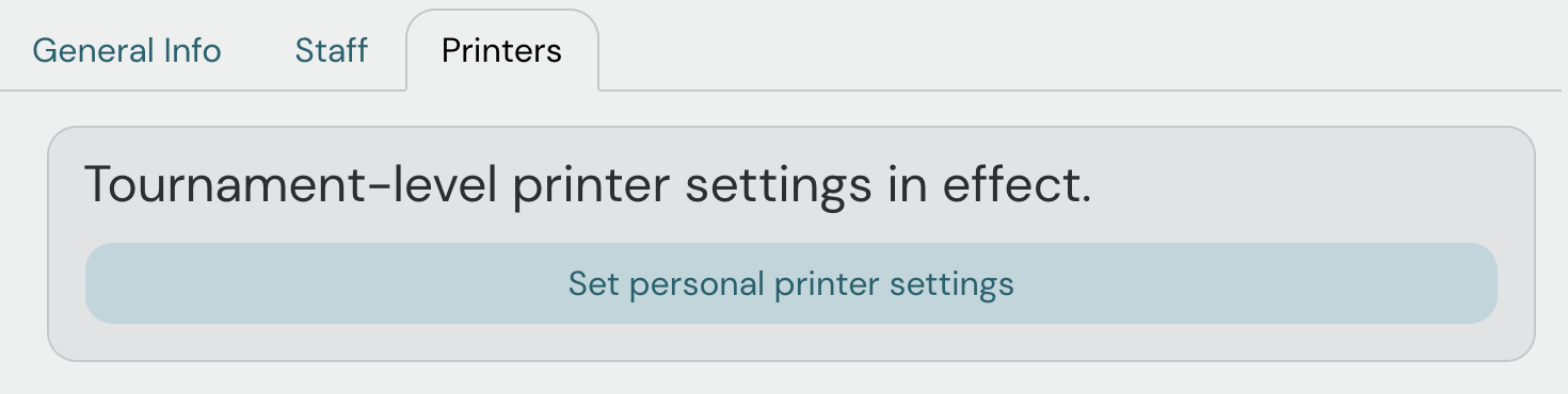 Personal printer selections are linked to a specific admin account and a specific tournament. Personal selections take precedence over tournament-level selections, so any printjobs requested by a specific admin will be sent to their respective printers.